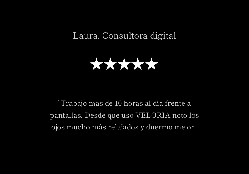 VÉLORIA filtra hasta el 99 % de la luz azul artificial emitida por pantallas digitales.